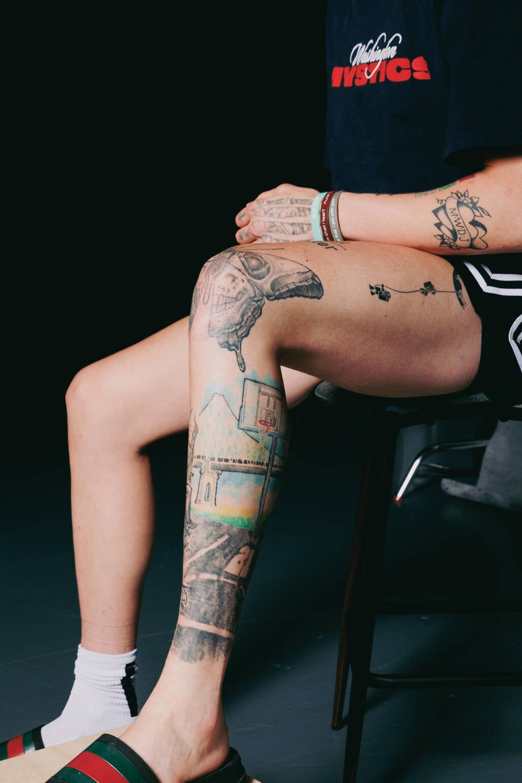 That’s tough because I really like all my tats. My whole leg sleeve has meaning to me. It’s based on the court where I grew up playing back home in the Bronx. I’ve also got Saint Sebastian on there. He’s the saint of sports, and that was my saint for confirmation. It just tied everything together.