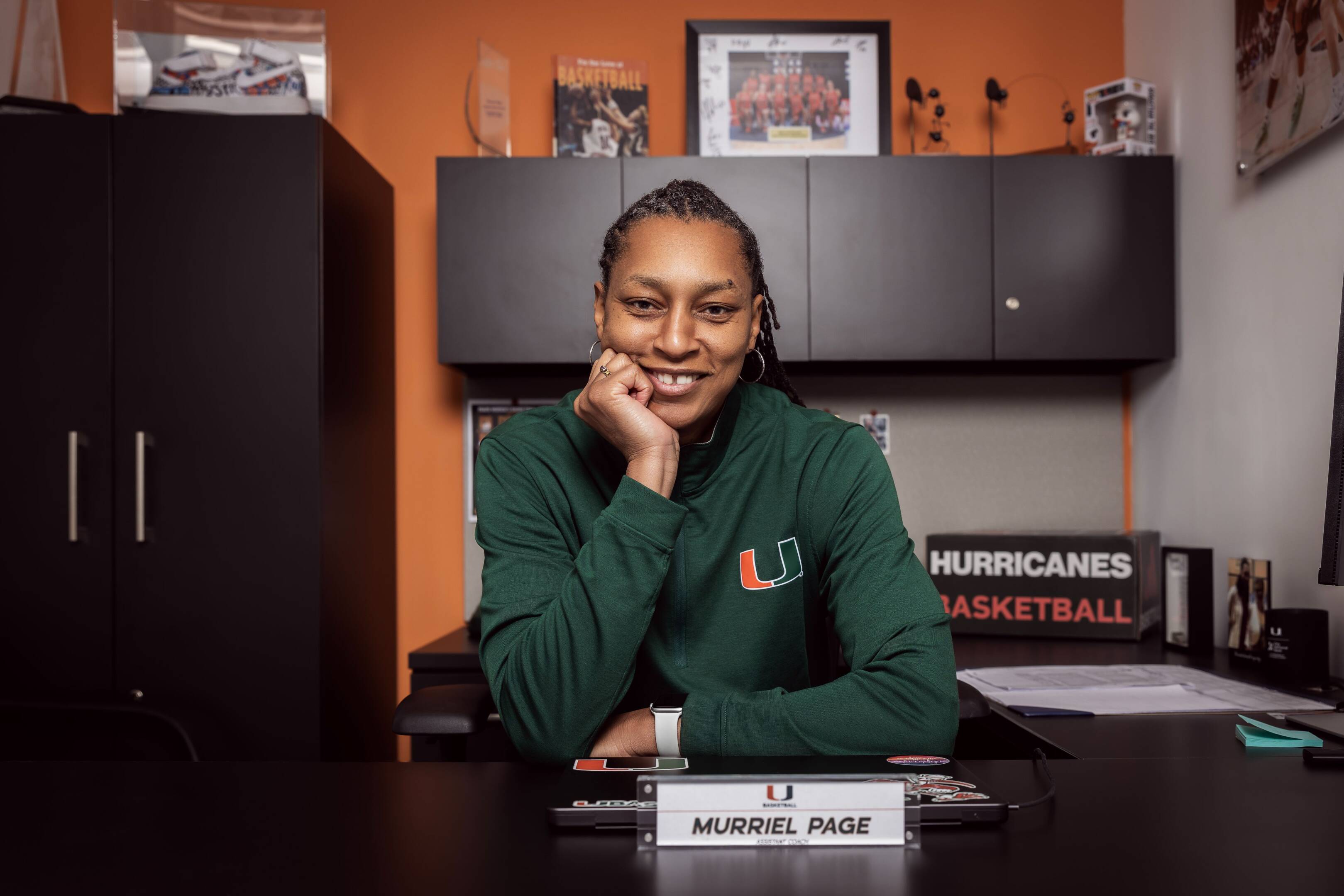 Page’s office at the University of Miami tells a quieter version of that story. Framed jerseys. Team photos. Small reminders of a journey that started in a small town in Mississippi, took her to the University of Florida, and eventually to Washington as a first-round draft pick.
