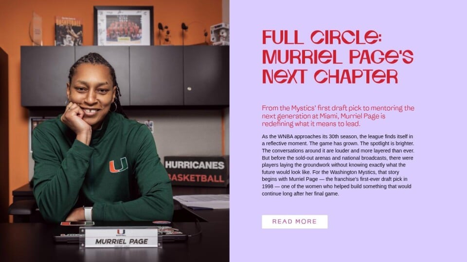 From the Mystics’ first draft pick to mentoring the next generation at Miami, Murriel Page is redefining what it means to lead.